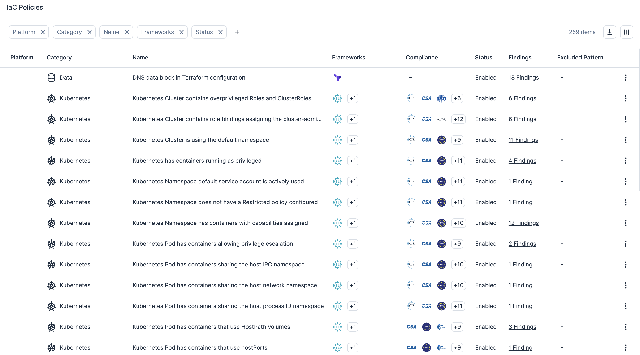 Examine continuamente AWS, Azure, OCI, GCP, OCI e Kubernetes em busca de configurações incorretas, violações de políticas e recursos expostos publicamente para revelar riscos em tempo real.