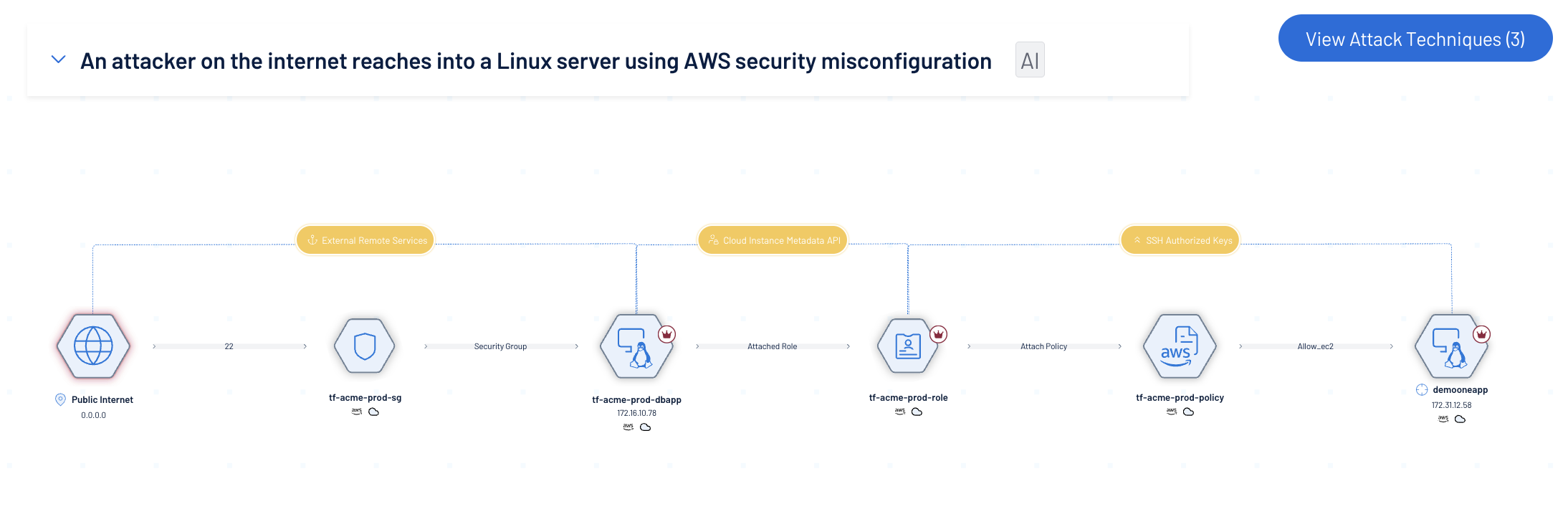 Correlacione vulnerabilidades, configurações incorretas e riscos de segurança de identidade na nuvem para revelar combinações tóxicas e vias de ataque reais, proporcionando visibilidade unificada em todo o seu ambiente híbrido.